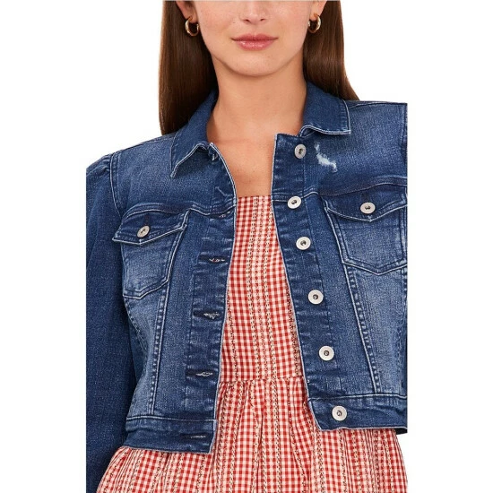 Best deal βœ”οΈ Chelsea & Violet Distressed Point Collar Long Puff Sleeve Cropped Denim Jacket Quartz Wash 🎁