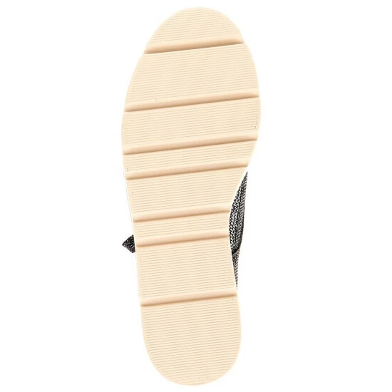 - Fabric upper with rhinestone embellishments