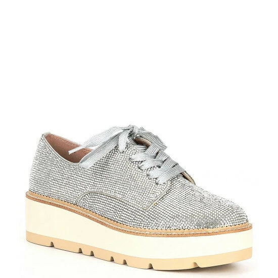 From Chelsea & Violet, the Insta Rhinestone Embellished Lace-Up Platform Oxfords feature: