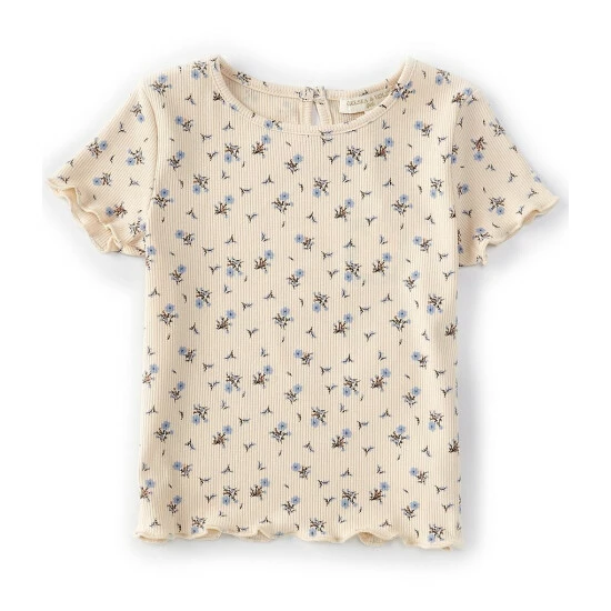 Buy πŸ˜€ Chelsea & Violet Little Girls 2T-6X Short Sleeve Floral Ribbed Tee Beige πŸ””