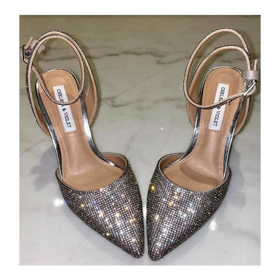 From Chelsea & Violet, the Mary Rhinestone Pointed Toe Pumps feature:
