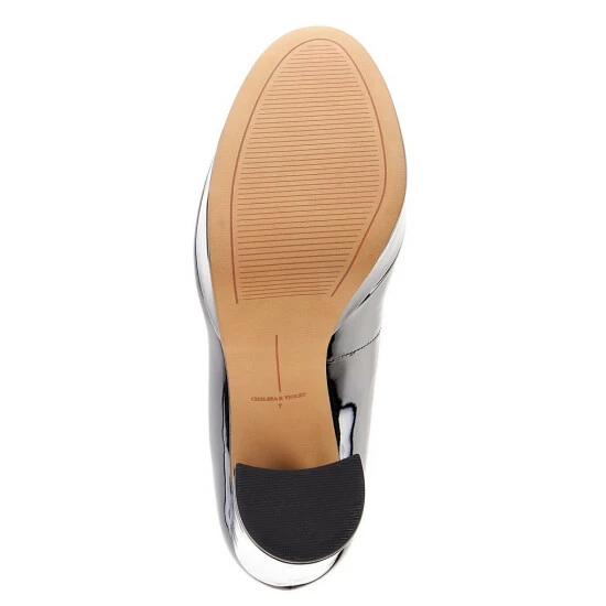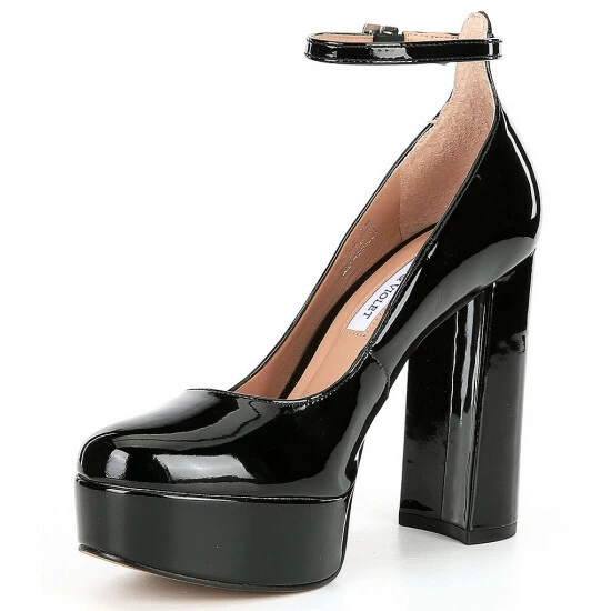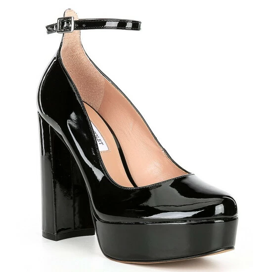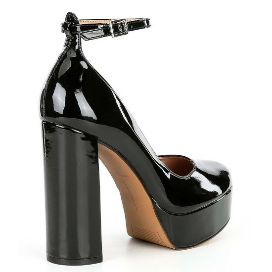 From Chelsea & Violet, the Mia Patent Ankle Strap Platform Pumps feature: