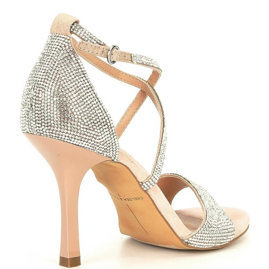 From Chelsea & Violet, the Queen Rhinestone Heel Sandals feature: