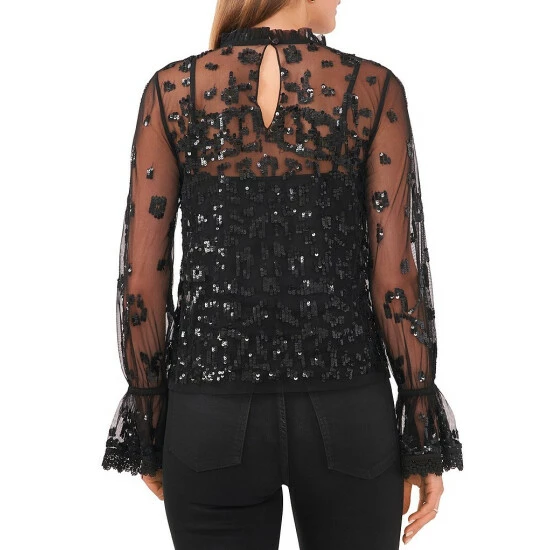 - Ruffled mock neckline